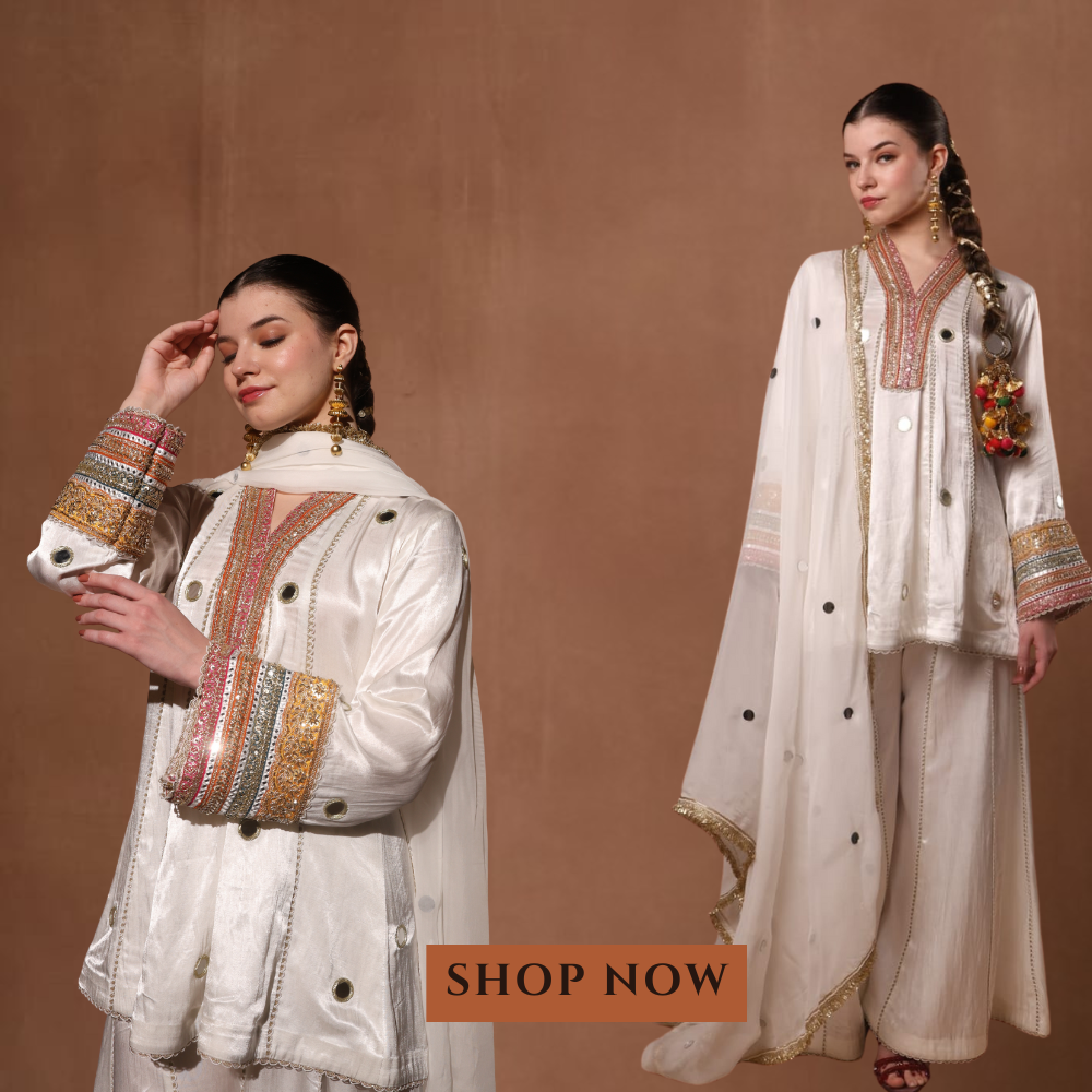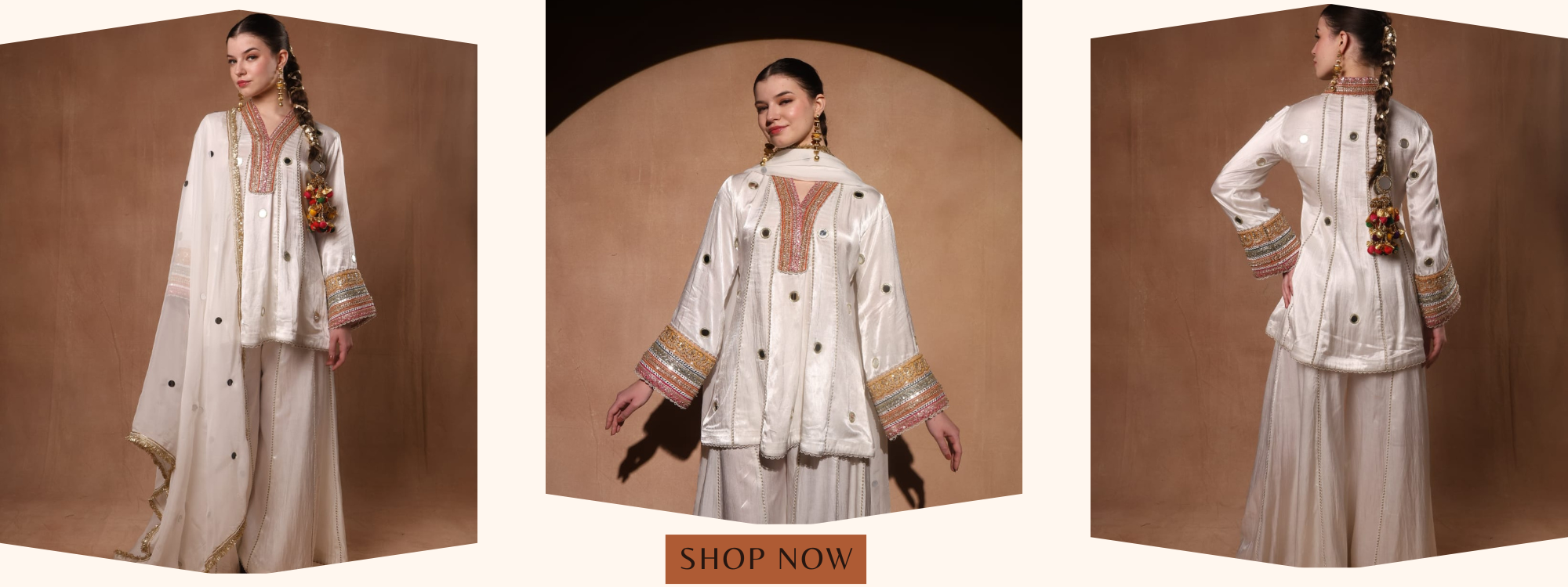 Kalidar off white Short Kurta with Kalidar Plazzo and Dupatta