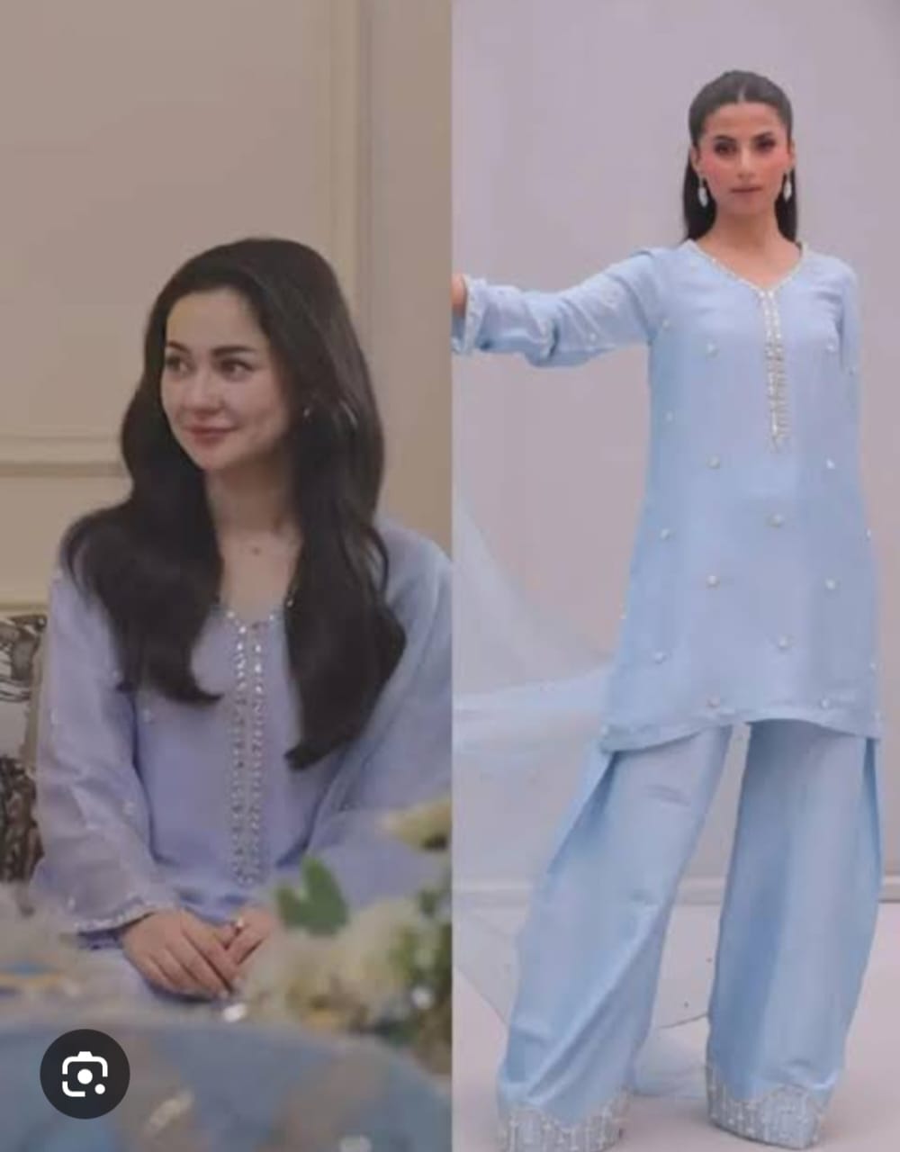 Armani Silk Short Kurta with Farsi Salwar – Handcrafted Pearl & Crystal Work