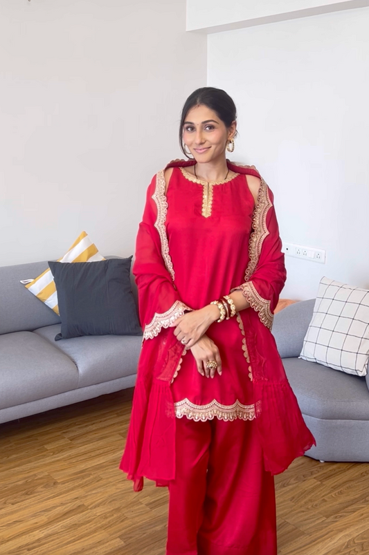 Crepe Kurta Set with Intricate Kasab Work and Organza DupattaRegular price ₹ 8,799.00Regular priceUnit price / per₹ 9,999.00Sale price ₹ 8,799.00Sale