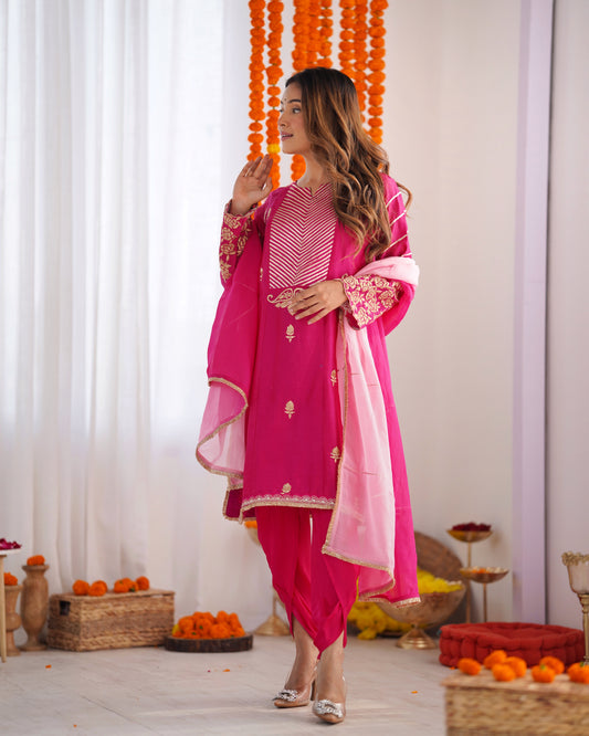 Chanderi Silk Kurta Set with Kasab Embroidery & Organza DupattaRegular price ₹ 9,799.00Regular priceUnit price / per₹ 11,999.00Sale price ₹ 9,799.00Sale