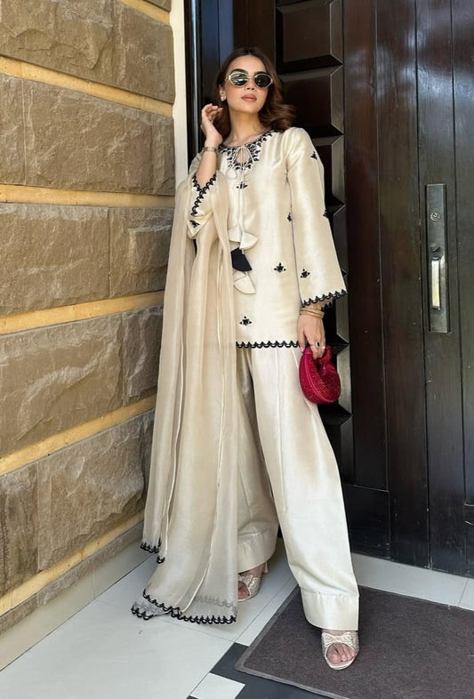 Embroidered Short kurta with Farsi salwar and dupatta