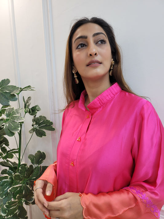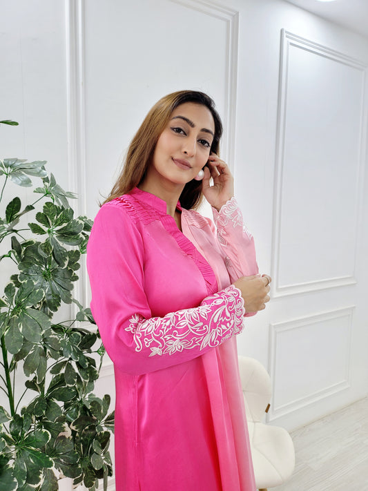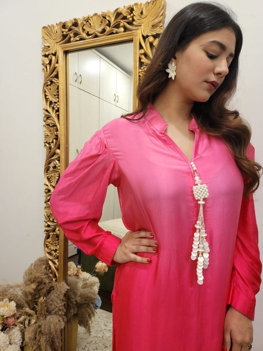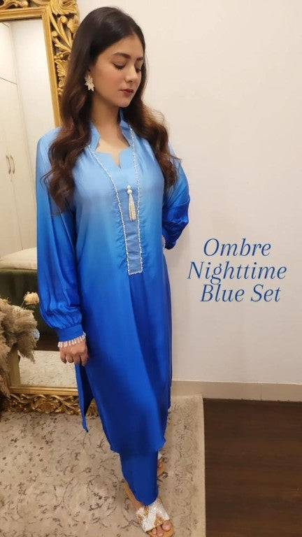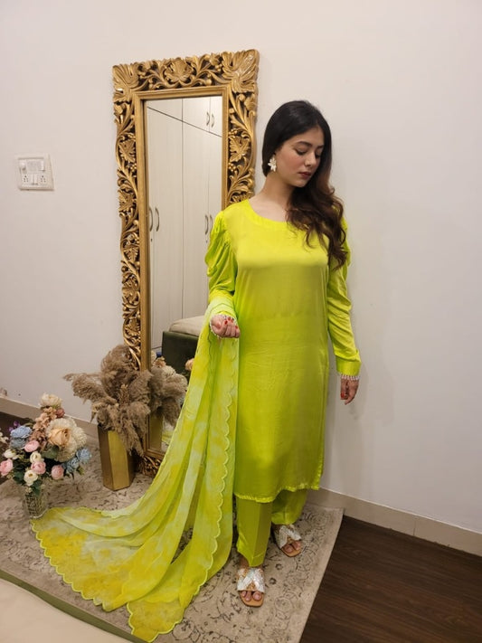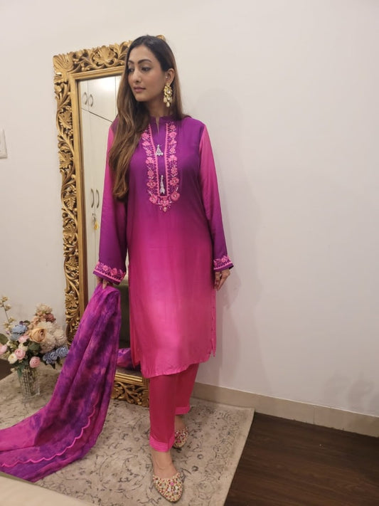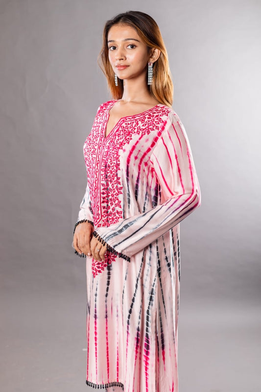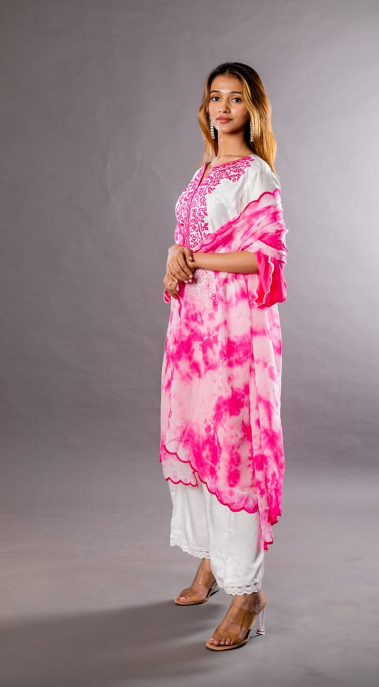 Straight kurta with mirror work along with straight pants and tie and dye dupattah