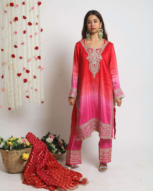 HOOR~ Long Kurta with straight pants and dupatta