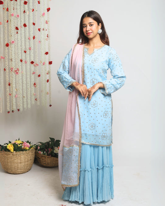 HOOR~ Gharara with short top and dupatta
