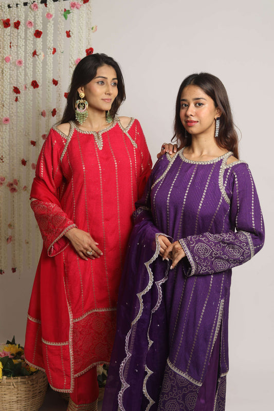 HOOR~ Long Kurta with straight pants and dupatta (Purple)