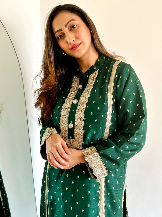 HOOR~ Straight kurta with kaliwala pants and dupatta (Green)