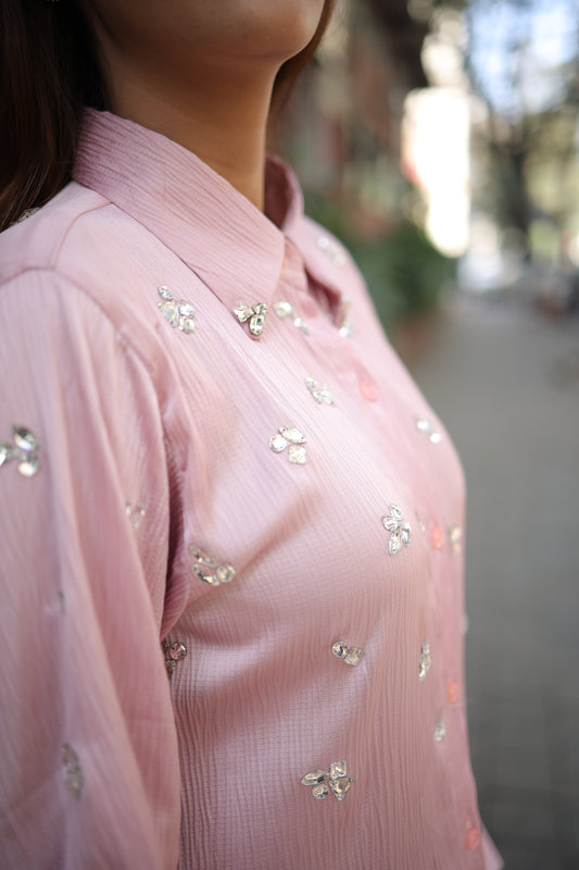 Crystal & Stone Embellished Co-ord Set (Pink)