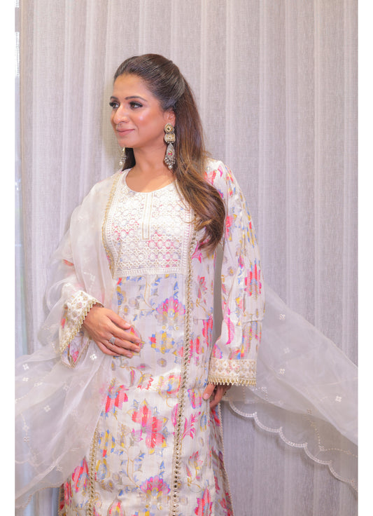 Long kurti with straight pants and organza dupattah