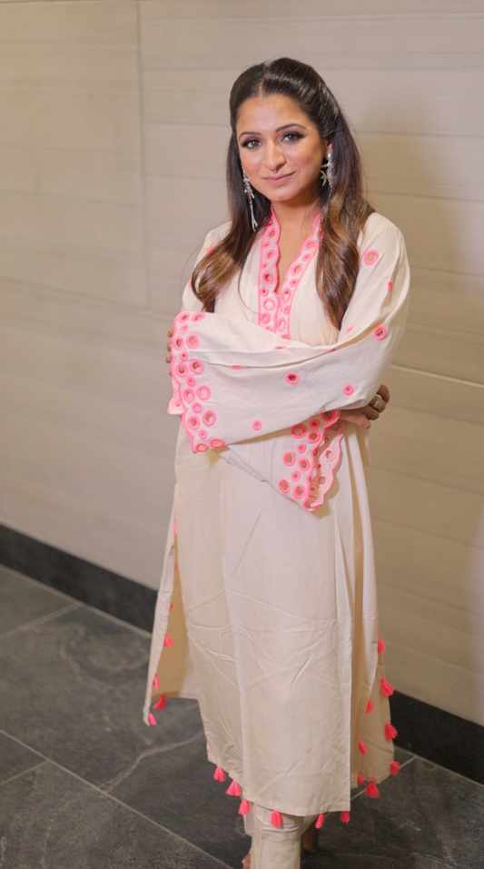 Embroidered Kurta and Pants with Tassel Accents