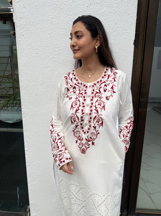 Armani Silk Short Kurta with Farsi Salwar – Handcrafted Pearl & Crystal Work