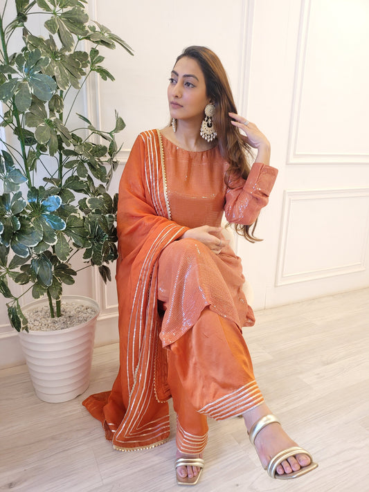 Long Sequence kurti with pants and organza silk dupattah with gotta work
