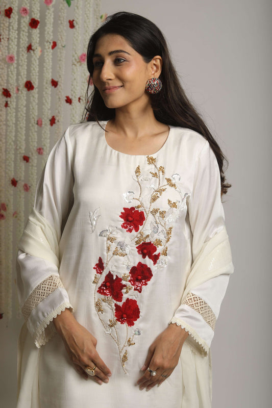 Kalidar off white Short Kurta with Kalidar Plazzo and Dupatta